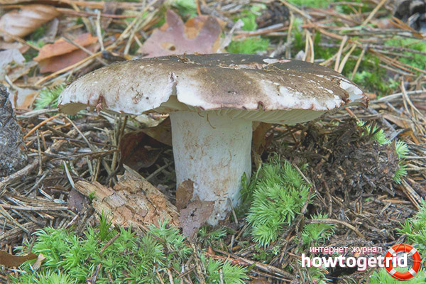 Много е лесно да объркате podgruzdok с такъв външен вид като почернелият Russula, цветът на кожата, чиято капачка може също да бъде от същия цвят като в Chernushka. Основната разлика е по-малко наситеният цвят на гъбичките.