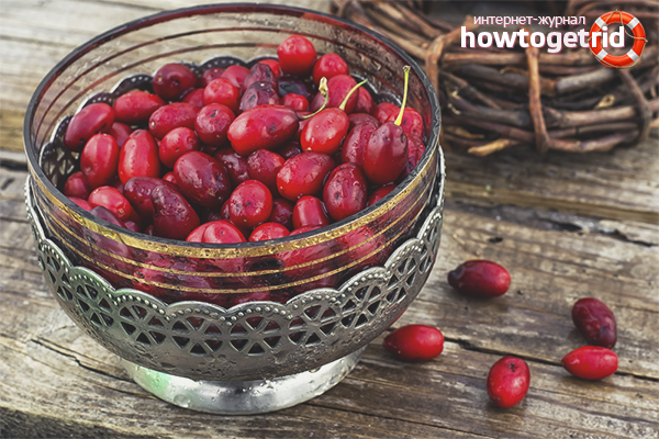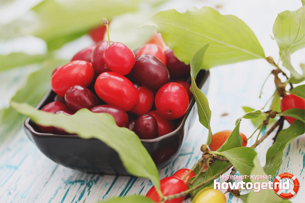 - Поради противовъзпалителните и стягащи действия, плодовете облекчават червата от смущения. Поради холеретичните и диуретичните свойства се подобрява чернодробната и бъбречната активност.Достатъчно, за да включи в диетата kissel, компоти и сок на базата на cornels.