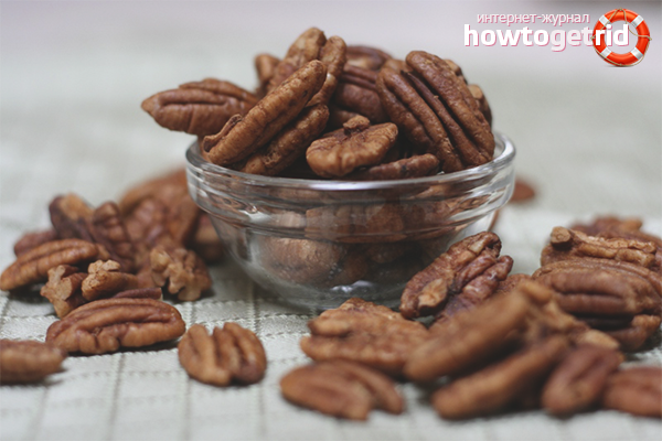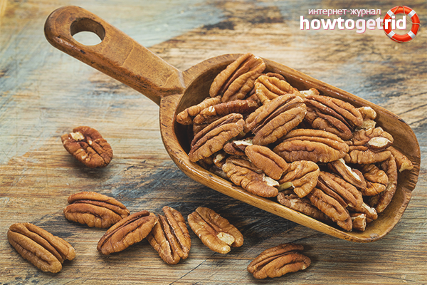 - Забранено е да се консумира пекан в каквото и да е количество за хора, които са със затлъстяване на черния дроб. Също така, вредата може да бъде причинена от индивидуална непоносимост към продукта. Не е тайна, че ядките принадлежат на силни алергени, така че ядрото трябва постепенно да бъде включено в диетата.
