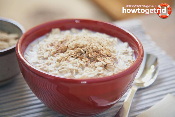 - Ястието е в основата на много гладни дни. Овесените ядки съдържат малко въглехидрати и много влакна, така че се извършва цялостно прочистване на червата от шлака. Хранителните вещества правят каша подходяща за менюто с диети.