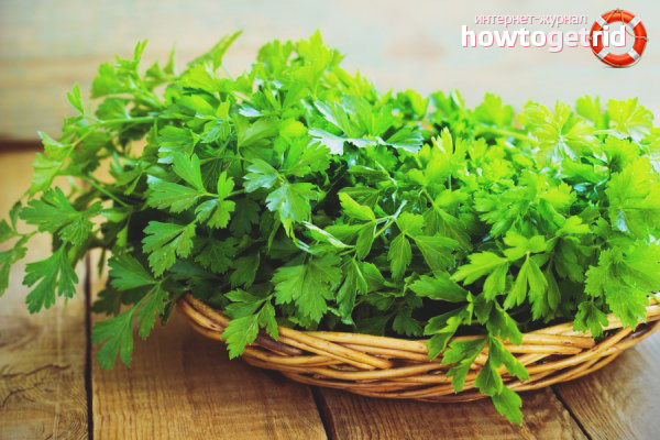 - Ниска калория и същевременно натрупването на полезни елементи ви позволява да използвате магданоз в менютозагуба на тегло и хора със затлъстяване. В резултат на това нивата на холестерола се намаляват, рискът от атеросклероза се предотвратява.