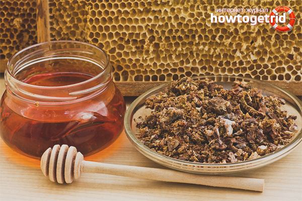 - Пчелните продукти могат да се използват както вътрешно, така и отвън. Съставът има противовъзпалителен ефект, убива вредните микроорганизми и премахва тъканния оток.