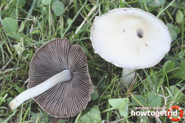 - Меката част на цялата гъбичка е боядисана белезникаво. От него идва един фин аромат. Този тип гъба има двойка, която се нарича кафяво-сива psatirella. Това двойно е тъмно, расте до дърветата в тревата. Гъбата Candol не се използва в народната медицина. Има и други имена, като крехка или лисица.