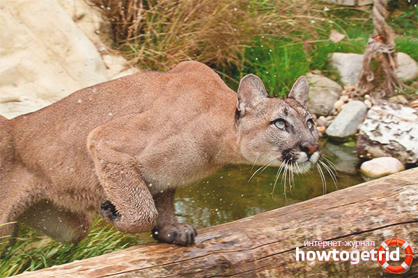 - От природата, пуъсите са надарени с изобретателност, така че те често са дори натъпкани с армадило, змии, скункс и глупаци. Големите котки се опитват да стоят далеч от водата, не обичат да плуват. Въпреки това, ако е необходимо, може да ловува за риба.