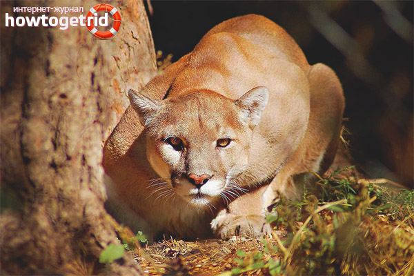 - Трябва да се отбележи, че хищници ходят главно привечер. Най-често кугерите седят в засада, а след това скачат, атакуват жертвата. Котката веднага се опитва да изяде шията на плячката, скачайки по гърба си.