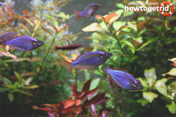 - Такава риба се разбира добре с мирни индивиди с малки размери.Също така трябва да вземем предвид, че неоновите меланотеии се обучават в риба. Този критерий е особено важно да се обмисли кога съотношението на женските към мъжките при размножаване.
