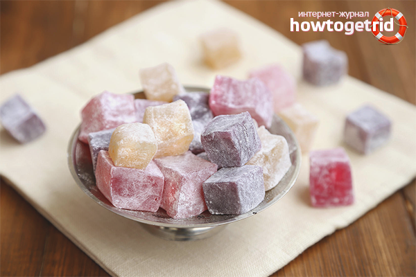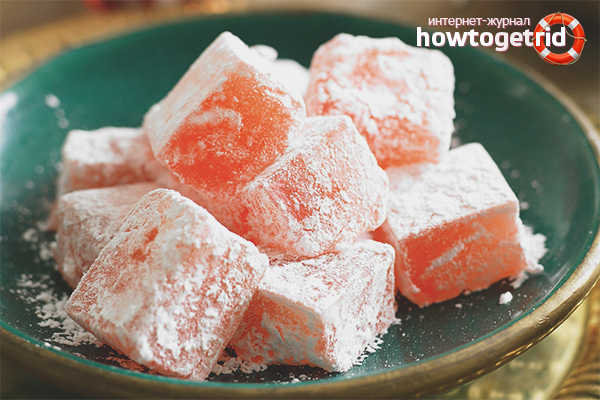 - Не забравяйте, че един от основните компоненти на турското Delight е гранулирана захар. Почти всеки знае какви щети може продуктът да причини на човешкото тяло. Захарта допринася за отлагането на мастните тъкани. Последните обгръщат вътрешните органи.