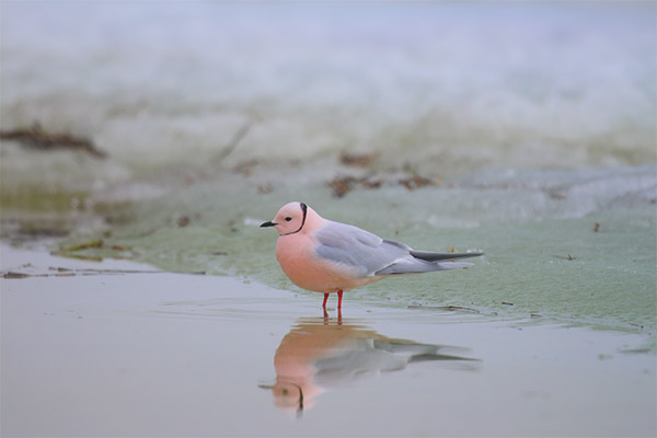 С началото на молтата семейството на розовите чайки се събира на групи, за да се приближи до морето.Тук младите хора се научават да ловуват сами, адаптирайки се към суровия климат.