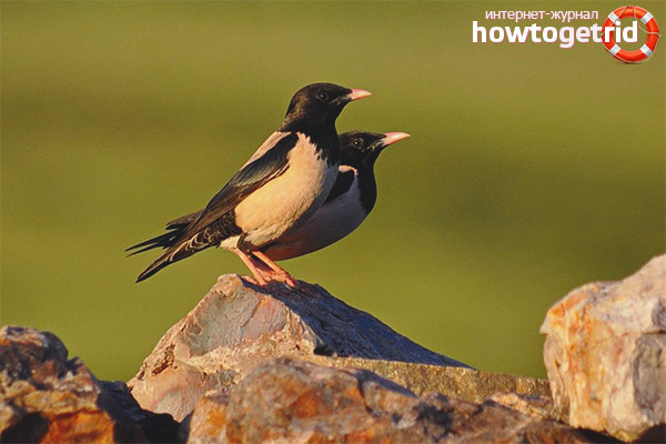В горската степ, тези розови пернати представители практически не се намират, както и на територията на нашата страна. Птиците се изпращат за зимуване в Индия, защото местните климатични условия са подходящи за тях. Те се различават от обикновените членове на семейството с по-малки общи характеристики и тъп клюн. Те ядат скакалци, обичат да се размножават в скалиста зона.