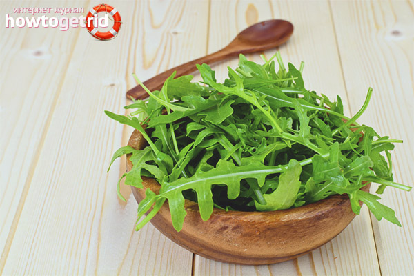 - Основното предимство на руколата пада върху храносмилателния тракт. Това се дължи на високата концентрация на фибри, стимулира чревната подвижност, което ви позволява да нормализирате ежедневния изпражнения.