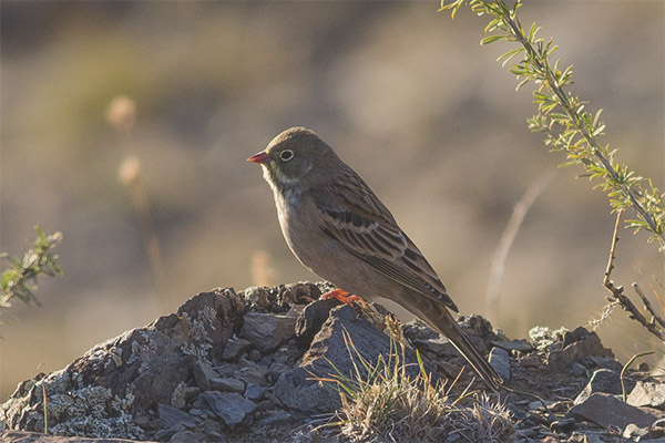 Изграждане на щифтове много компактен. Можете да ги различите от другите птици чрез яркия си цвят и глас. Тези пера имат бели пръстени около очите си. По принцип главата е боядисана с маслини по същия начин като областта на гърдите. Розов цвят на клюн.Също така на главата могат да бъдат разграничени особени жълти "антени", които влизат в една и съща жълта врата. В корема на buntings е кестен цвят.