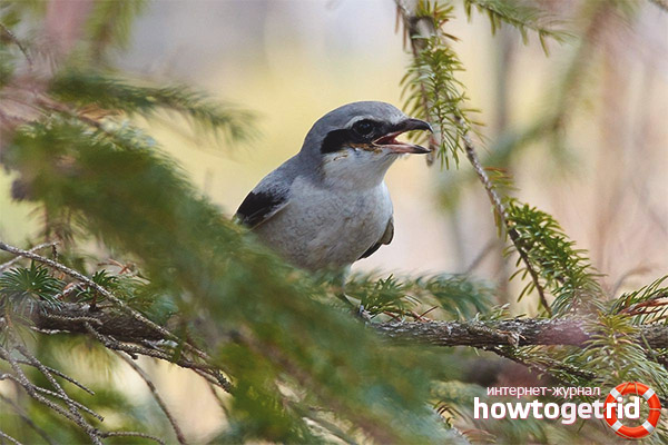 Bird Grey Shrike се смята за истински отшелник, тъй като рядко го виждате в природата. Ако все още наистина искате да видите представители на този вид, ще трябва да имате много търпение и внимание. Тези птици се опитват да се пазят доколкото е възможно от човека. Те обикновено живеят на ръба на гората или близо до блата. Птиците седят високо на едно дърво или на храсти. Пеенето на тази птица прилича на звуците, направени от четирийсет.