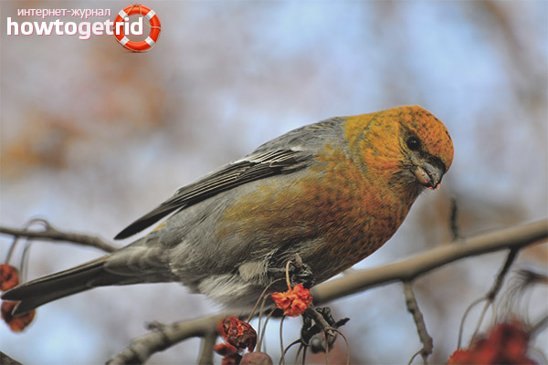 - Подобно на други индивиди от семейството на фин, видовете птици принадлежат към лечителите на гората. Гросбият дърпа вредители от багажника, както и семена от лоши растения.