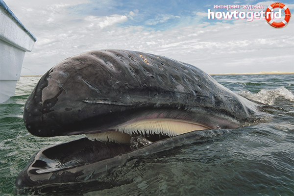 В устата на животното се поставя известният мустак на китката, който е черна коридорирана чиния, поставен на върха на небето и висящ надолу. От всяка страна има около 400 такива записа. Дължината им варира от 50 до 100 сантиметра. "Whalebone" е необходимо за едно животно, преди всичко като един вид филтър, с помощта на който кит елиминира вода и крил. Когато влезе в устата, водата излиза през плочите, но китът поглъща останалата част от храната.