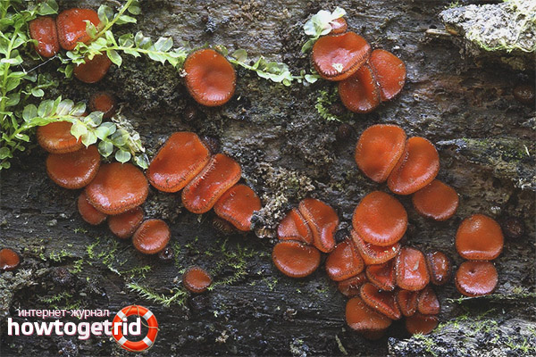 Бих искал да отбележа, че пиронемичното семейство гъби е най-разнообразно по отношение на тяхната екология и морфология. Техните представители, по-специално щитовидната склеилини, образуват характерна чаша с форма на апотезия с различни размери. В допълнение, видовете от това семейство най-често се различават от останалите в доста светлия и очарователен цвят, като правило те са сочни оранжеви и червени цветове, което се дължи на наличието на каротеноидни пигменти в структурата на гъбичките.