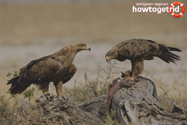 Освен това степният орел може да ловува от засада и това дава резултати в ситуации, в които птицата може да намери величествена колония от гопс наведнъж. В този случай орелът показва огромно търпение, чакайки малък камък или хълм. Когато жертвата излезе от нората си, орелът веднага я хваща. Между другото, тези птици могат да тичат доста бързо.