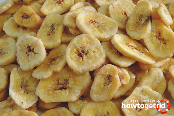 Чиповете от банани са вид сушен банан. Те са много опасни за тялото. Докато те готвят във врящо масло. Така че те съдържат огромно количество канцерогени. Когато купувате, не забравяйте да прочетете опаковката. Трябва да се напише изсушено или сушено, но не пържено.