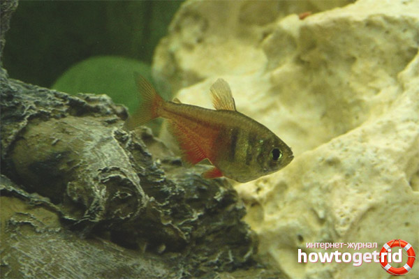 Съдържат Tetr von Rio може да бъде в малък аквариум, ще бъде достатъчно, за да закупите контейнер с обем от 50 литра. Важно е тези риби да се предоставят на фирма, така че да не бъдат отегчени и самотни, а за начало можете да закупите стада от 7 малки риби. Ако искате да започнете по-голям брой хора наведнъж, тогава аквариумът ще трябва да вдигне повече в обем. Що се отнася до параметрите на водата, най-подходящата опция за тези индивиди е меката и леко кисела вода, както всъщност за всички тетри.Тъй като обаче tetras се разреждат за търговски цели, през това време те успяват да свикнат с най-различни условия, така че не бива да се тревожите твърде много за това.