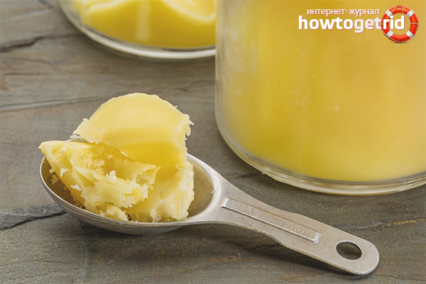 - Ако спазвате няколко правила за преработка на масло в разтопен състав, той може да се използва не само за храна, но и за борба срещу много заболявания. Известно е, че ghee се използва широко в традиционната медицина.