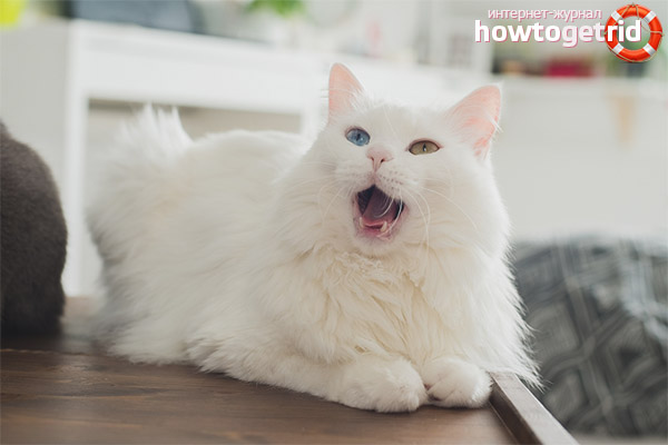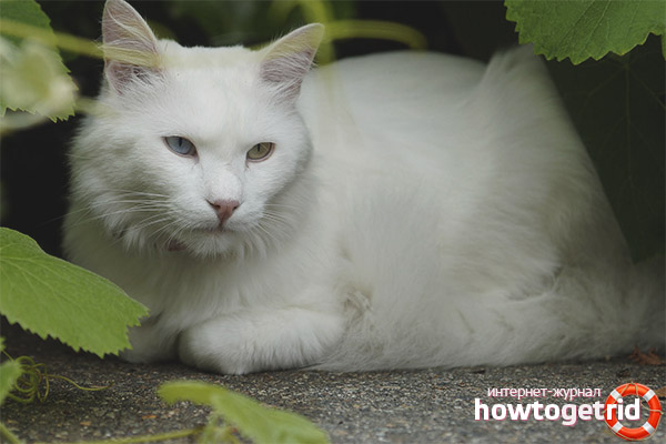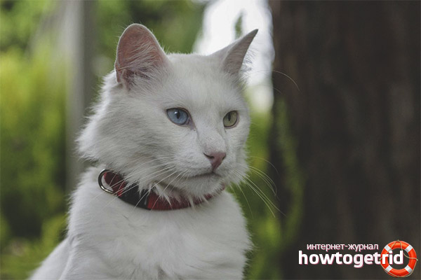 Тези котки имат пухкава бяла вълна, пухкава опашка.Очите им са сини, но често се случва очите на животното да се различават по цвят един от друг. Според легендата самият пророк Мухамед, ако вярвате в описанието на външния вид, има котка от тази порода, която има очи с различни цветове. Следователно те не са изгонени от джамиите.