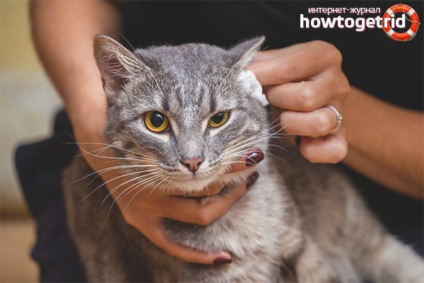 За да облекчите страданието на вашето любимо животно, можете да погреете разтвор на водороден прекис или малко растително масло в ушната мида.След тази процедура е необходимо внимателно да изтриете вътрешната повърхност на ухото от кафявото покритие.
