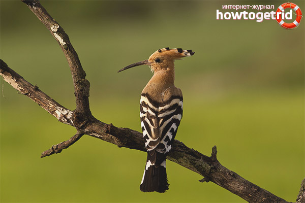 - Hoopoe екваториална. Както подсказва името, то живее в екваториалните райони на Африка от Танзания на изток до Конго на запад. Има тъмно оцветяване.
