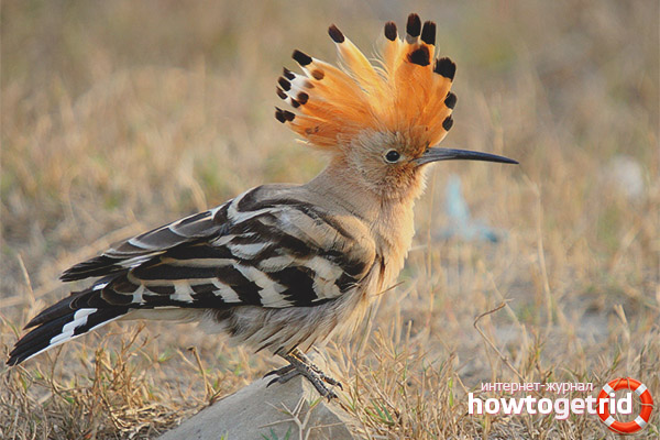 Получавайте собствена храна, главно на земята, без да влизате във високата трева. Специалният им човка дава възможност да проникнат дълбоко в тора, да се изсипят ями и да се търсят малки животни в близост до местата за разходка на добитък. Hoopoe не може веднага да поглъща голяма плячка, докато на земята, поради малкия си език, той първо го хвърля над себе си и поглъща. Ако големи буболечки падат в лапите му, той разбива бронята си, удари го с човката.