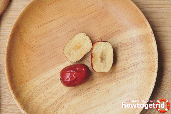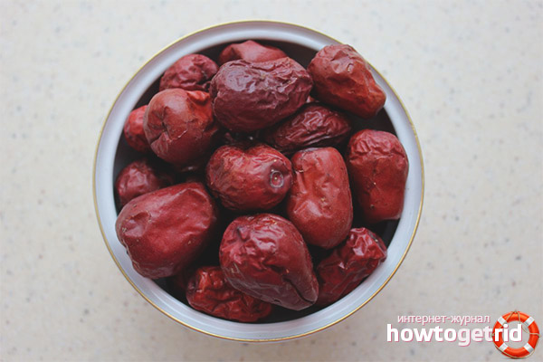 Това е важно! За да се осигури максимален ефект, е необходимо да се използват само зрели шушулки. Непознатите китайски дати не са в състояние напълно да покажат всичките си терапевтични ефекти. Много е лесно да се разграничат зрелите плодове от незрели представители. Те имат кафяв оттенък с червен нюанс.
