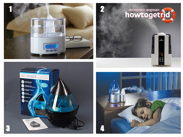 1) овлажнители на студен пара с въздух 2) гореща пара 3) ултразвукови овлажнители 4) с йонизатори