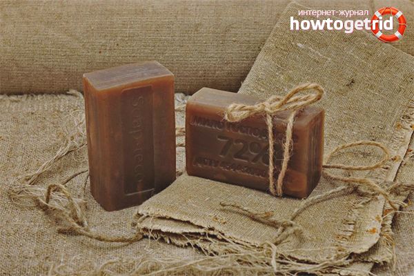 Сапунът за пране е най-често използван за борба с пърхот и себорея, прекомерна мазнина. Често косата е избелена и черната боя е измита. За да се възползвате, трябва да използвате разтвор на сапун не повече от 3 пъти месечно. Не забравяйте да защитите плитчината с балсами и лечебен отвара.