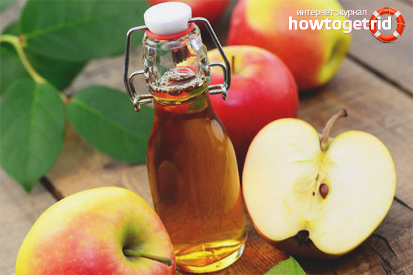 Ябълковият оцет от ябълки има широк спектър от приложения. Съставът поддържа сянката на косата, облекчава скалпа от пърхот и себорея, спояващите части разделят краищата, елиминира излишната мазнина. За да получите всички предимства, уверете се предварително, че не сте алергични към продукта (проверете тест, причинявайки част от парите на лакътя).