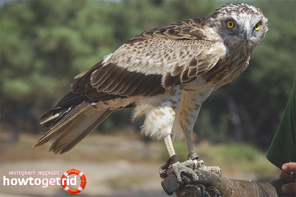 Змиите често се представят от орел, въпреки че той не прилича с добре известния човек. Той е характерен представител на големите хищници, чиято дължина достига 70 сантиметра, чиито размери на крилете достигат 190 сантиметра,а масата на възрастен ловджий може да формира до 2 килограма.